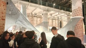 La Mostra Intelligens. Natural. Artificial. Collective., a cura dell’architetto Carlo Ratti, invita alla collaborazione tra diversi tipi di intelligenza per ripensare insieme l’ambiente costruito in un periodo pervaso dai cambiamenti, non solo climatici ma anche tecnologici. Il titolo, un neologismo la cui parte finale, gens, significa “popolo” in latino, è un invito a sperimentare l’intelligenza umana, artificiale, naturale e comunitaria per adattarci al mondo di domani.